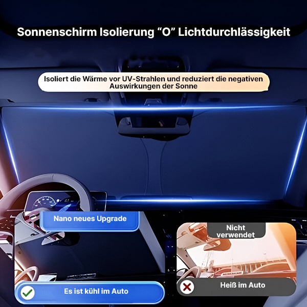 🚗 Schütze dein Armaturenbrett, die Sitze und das Lenkrad mit diesem einfach zu installierenden, faltbaren Sonnenschutz.