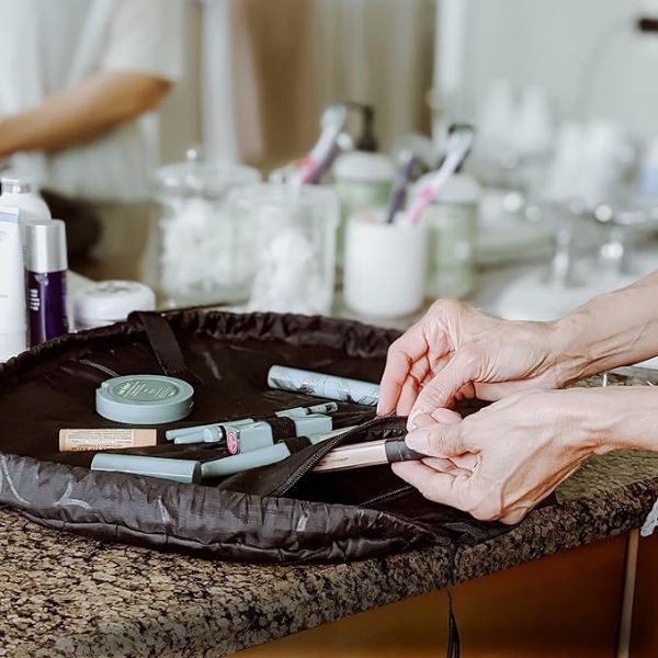 Genießen Sie mit GLAMSY eine mühelose Aufbewahrung. Ziehen Sie einfach am Kordelzug, um die Tasche auf ein kompaktes, reisefreundliches Format zusammenzufalten. Sie ist perfekt für Ihren Rucksack oder Ihr Gepäck und hält Ihre Beauty-Tools organisiert und vor Beschädigungen geschützt. Mit ihrer riesigen Kapazität und ihrem Komfort ist diese magische Tasche ein unverzichtbares Accessoire, in dem Sie all Ihre Hautpflegeutensilien verstauen können.