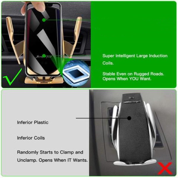 Diese neue Autohalterung mit Ladegerät für Handys verwendet intelligente Technologie, die Ihnen ein schnelles und drahtloses Laden ermöglicht. Mit der automatischen Öffnung können Sie Ihr Handy mit nur einer Hand in der Halterung befestigen!