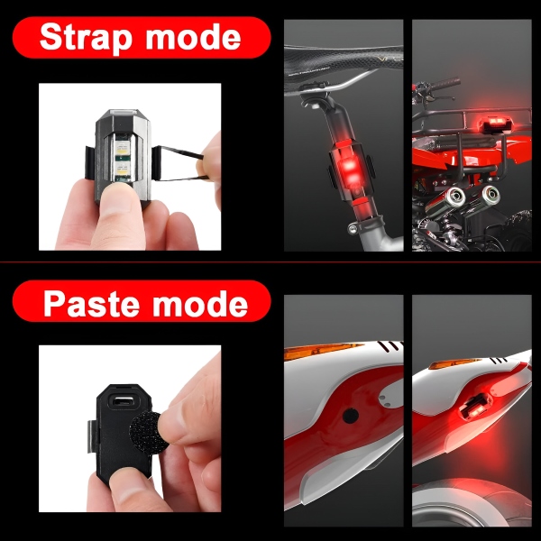 Diese Lichter sind unglaublich vielseitig und für Autos, Motorräder, Fahrräder und Drohnen geeignet. Wählen Sie zwischen Klettverschluss- und Gummiring-Installationsmethoden für eine sichere und einfache befestigung. Es besteht keine Notwendigkeit für Werkzeuge oder professionelle Hilfe.