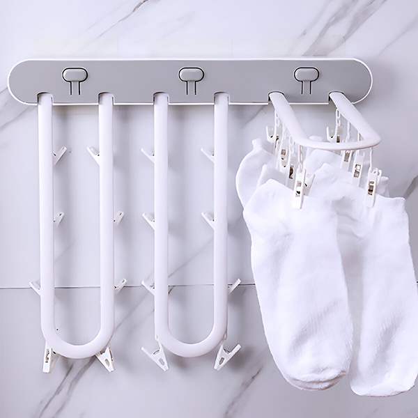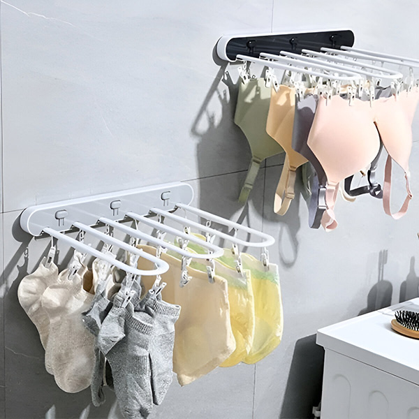 Mit dem Kleber können Sie ihn auf jede flache Oberfläche oder an die Wand kleben und mehrere kleine Gegenstände trocknen – ohne Werkzeug oder Bohren! Das Gestell lässt sich bei Nichtgebrauch flach an die Wand klappen und spart so Platz in Badezimmern, auf Balkonen oder in Waschküchen.