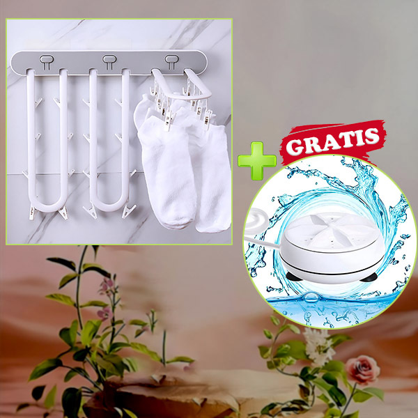 🎁 Sie erhalten – 1x Wäschetrockengestell + 1x tragbare Mini-Waschmaschine